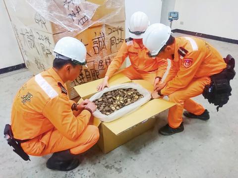 Samples have been taken for testing and if it is confirmed that the mushrooms were smuggled from China, charges will be brought against the importers, the Kinmen Coastal Patrol Unit said.
