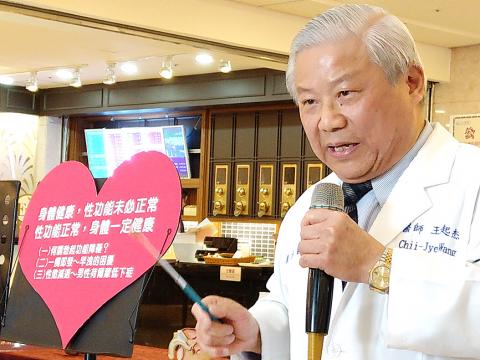 Erectile dysfunction linked to higher obesity rates is increasingly prevalent among men in their 20s and 30s in Taiwan, E-Da Dacheng Hospital urologist Wang Chii-jye (王起杰) has warned.