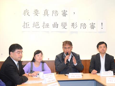 At a news conference at the Legislative Yuan, association president Wu Ching-chin (吳景欽), an associate professor of law at Aletheia University, said that the combined system is likely “an unprecedented invention.”