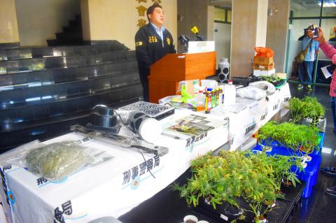 A total of 57 cannabis plants, along with 396g of dried cannabis with an estimated street value of NT$10 million (US$324,492), were seized at Chen’s residence in Taichung, the bureau’s 8th Investigation Corps said.