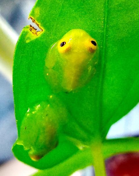 Taipei Zoo’s Amphibian and Reptile House yesterday announced that Fleischmann’s glass frogs at the zoo had laid a clutch of eggs that had metamorphosed and were taking to the trees, their natural habitat.