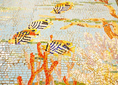 The mural, titled Tropical Fish, is the work of artist Yan Shui-lung (顏水龍).