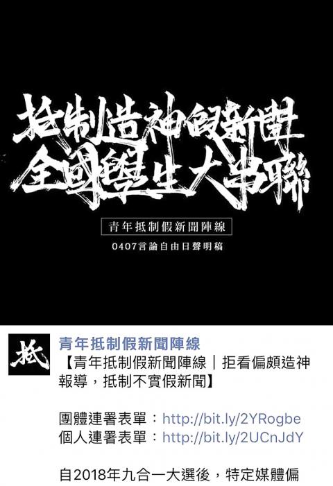 By publishing false news reports and promoting certain politicians as “god-like,” the media outlets are failing in their role as the fourth estate and “destroying Taiwan’s democracy,” it said.