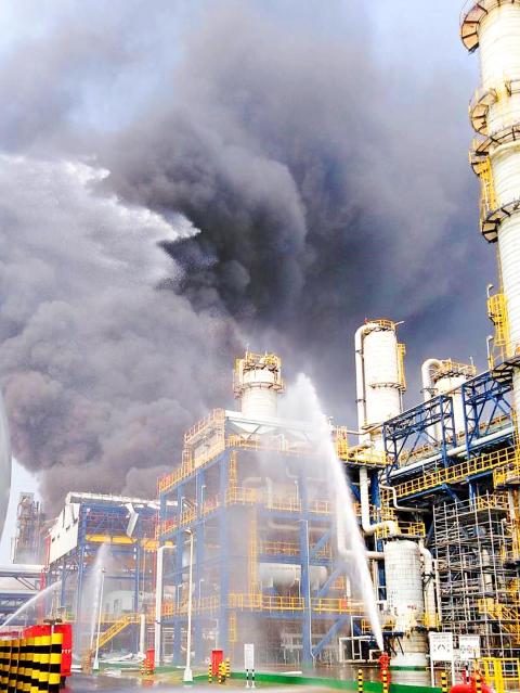 The explosion on Sunday occurred at an aromatics production factory run by Formosa Chemicals & Fibre Corp (台灣化纖).
