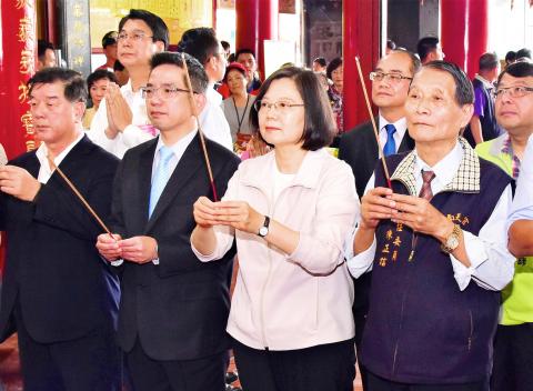 “The DPP has only one option, which is unity; one plus one is absolutely greater than two,” Tsai said after visiting temples in Yilan County’s Nanfangao Township (南方澳).