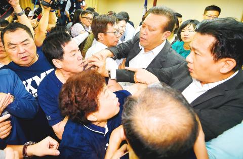 KMT legislators then tried to stop Lee Chin-yung from leaving, yelling for him to quit and saying his nomination as chairman was “disgraceful.”