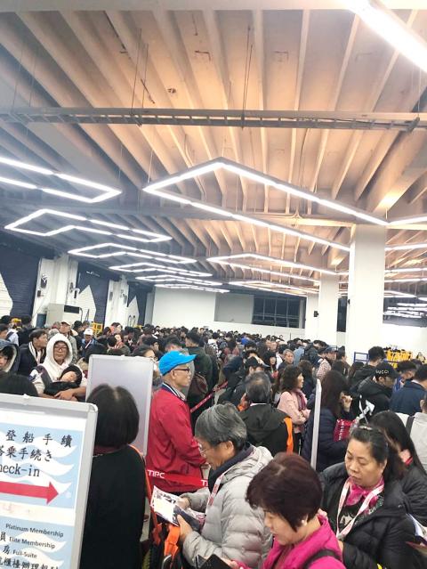 “The agency did not deliver what it had promised in the advertisement and blamed all the delays on inclement weather,” a traveler surnamed Chou (周) said. “Although it was advertised as a four-day tour, it was actually a three-day tour. We spent a lot of time waiting in lines to disembark — four hours on the first day, three hours on the second day and two hours on the third day.”