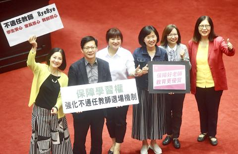 The legislature yesterday passed amendments to the Teachers’ Act (教師法), which included more clearly defined rules on the determination of “unfit” teachers, as well as an additional mechanism for schools to review teachers’ professionalism.