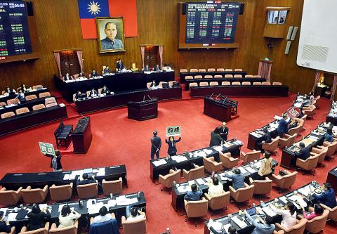 Concurrently, a group of KMT lawmakers held a news conference outside the legislative chamber to decry the legislation.