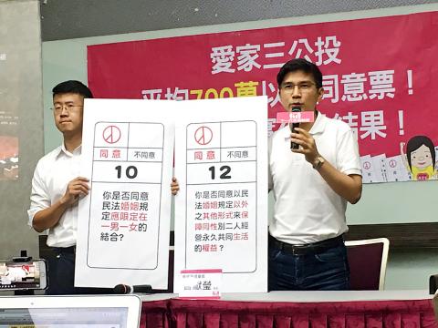 Lawmakers in favor of same-sex marriage yesterday hailed the passage of the Enforcement Act of Judicial Yuan Interpretation No. 748 (司法院釋字第748號解釋施行法) as a historic moment for the nation, while those who oppose it said it was an example of “a minority bullying the majority.”