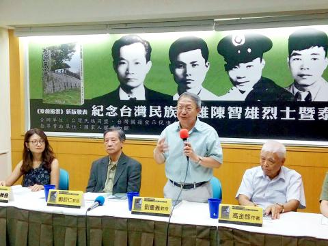 Academics and government officials joined former political prisoner Kao Chin-lang (高金郎) to commemorate five martyrs of the Taiwanese independence movement who were executed in the 1970 Taiyuan Prison Insurrection at a book launch event in Taipei yesterday.