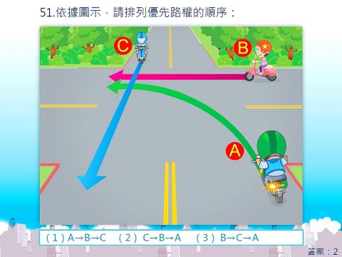 Of the 250,000 people that take the scooter driver’s license test each year, more than half incorrectly answer questions about how to drive safely when a vehicle is positioned to the front and right of them, the Directorate-General of Highways (DGH) said yesterday.