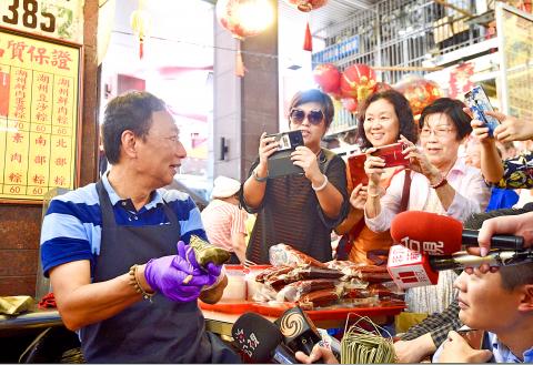 Hon Hai Precision Industry Co chairman Terry Gou (郭台銘), another KMT presidential hopeful, said that after “hearing Han’s slogans about boosting the economy and ‘get-rich diplomacy,’ I think he is copying me.”