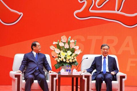 Chinese Nationalist Party (KMT) Vice Chairman Tseng Yung-chuan (曾永權) and Chinese People’s Political Consultative Conference Chairman Wang Yang (汪洋) yesterday called for increased cross-strait collaborations based on the so-called “1992 consensus” and opposition to Taiwanese independence.