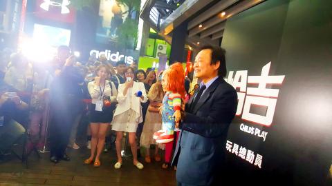 “Where’s the mayor?” Taipei City Councilor Wang Shih-chien (王世堅) shouted on Wednesday while holding a blood-smeared prop knife at the Taiwan premiere of Child’s Play in Taipei as part of publicity for the movie.