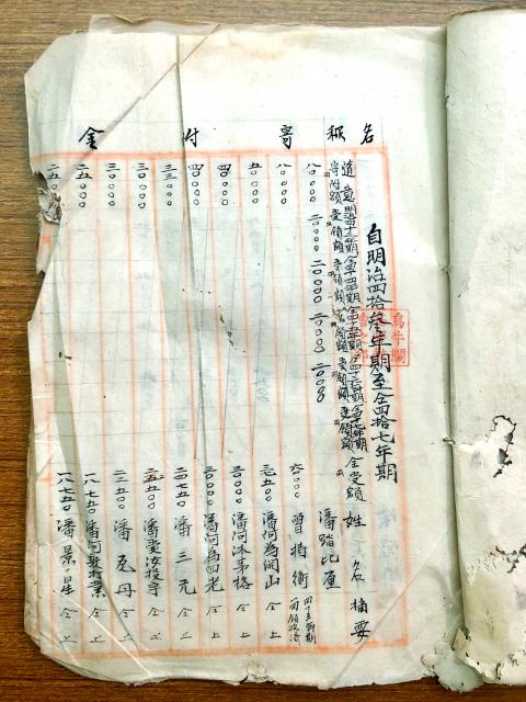 Among the artifacts preserved by the church is an account of the donations it received from 1910 to 1913, said association chairman Liang Chih-chung (梁志忠), who discovered them while surveying religious establishments.