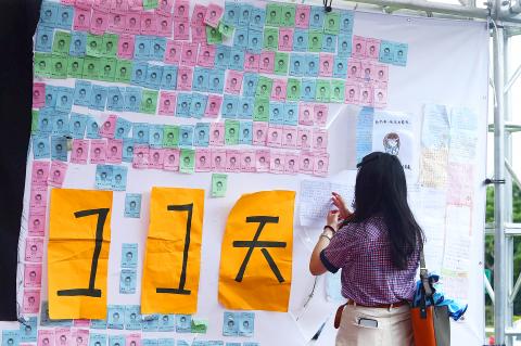 Union representative Liao Yi-chin (廖以勤) said the company would not agree to not punish the 18 flight attendants who the airline said went on strike on June 20, before the union officially began its strike action, and would not agree to reinstate the benefits and working conditions that striking employees enjoyed before going on strike.