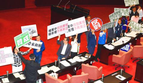 The Legislative Yuan in an extraordinary session yesterday passed a third reading of the Political Archives Act (政治檔案法) that includes prison as a punishment for individuals who attempt to destroy or hide political documents.