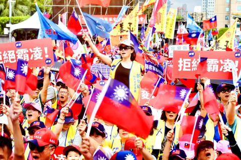 Democracy and freedom are the most important of Taiwan’s values, but the Democratic Progressive Party (DPP) has taken away referendums because it did not like last year’s results, Chu told the crowd, referring to referendums held alongside the local elections in November.