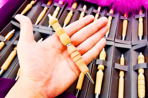Carpentry can be a trying and frustrating process, student Lin Chin-chi (林靜綺) said, but added that she feels a great sense of accomplishment when putting the finishing touches to a pen or pencil that has turned out just right.