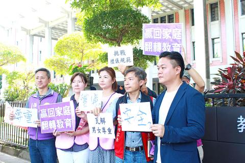 “The boundaries between men and women are being broken. Where does a skirt-wearing male student go when the call of nature comes?” Hung Chih-ho (洪志和) of the Kaohsiung City Parents Alliance said.