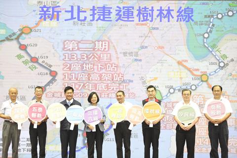 President Tsai Ing-wen (蔡英文) and Minister of Transportation and Communications Lin Chia-lung (林佳龍) were in New Taipei City to hear a briefing on the Wanda MRT Line’s second phase, for which construction is to begin in 2021.