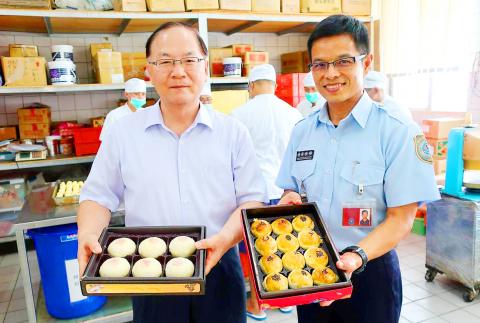 This year’s Mid-Autumn Festival gift sets come in boxes of six or 12 pastries, and are priced between NT$150 and NT$280, said Chen Su-ching (陳素卿), head of the prison’s operation section, adding that they must be ordered by Sept. 6.