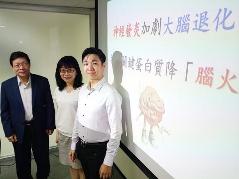 Siew Jian-jing (蕭建靖), the lead scientist of the research published on Aug. 2 in the journal Nature Communications, said the team has found the novel role of galectin-3 (GAL3) in promoting microglia-mediated neuroinflammation, which subsequently worsens neurodegenerative disorders such as Huntington’s disease and Alzheimer’s.