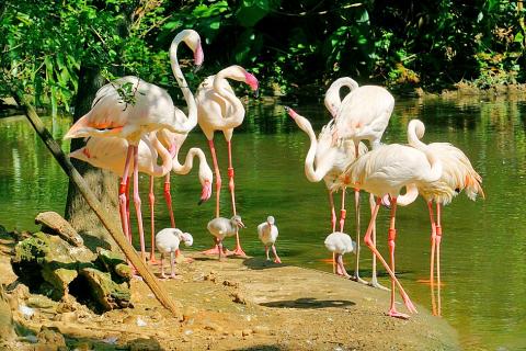 Flamingo chicks born last month at the Taipei Zoo are doing well and learning to swim, the zoo said on Monday.