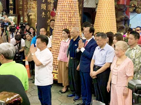 Gou took mooncakes to Ko and his parents at their home after going to the Hsinchu City God Temple with the mayor, where Ko told reporters that he had invited Gou to join him.