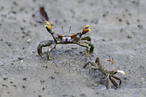 The bowed fiddler crab lives longer than most crabs and typically mates in the summer, Lin said, adding that another kind of crab often seen in the wetlands — the Macrophthalmus banzai — frequently escapes notice by camouflaging itself with mud.