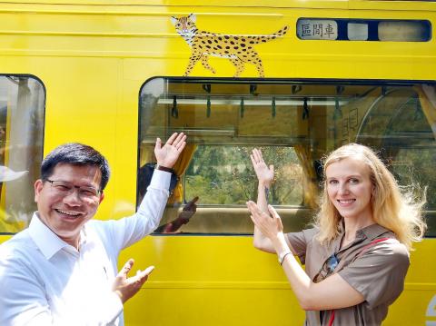 The Tourism Bureau yesterday unveiled a themed train in Nantou County’s Jiji Township (集集), despite controversy over the leopard cat illustrations used in the design.