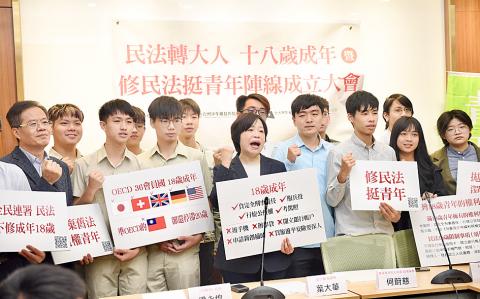 The legal age of adulthood in the Civil Code is 20, but the Criminal Code defines it as 18, the group said, adding that the gap has caused inconvenience for 578,000 Taiwanese aged 18 to 20.