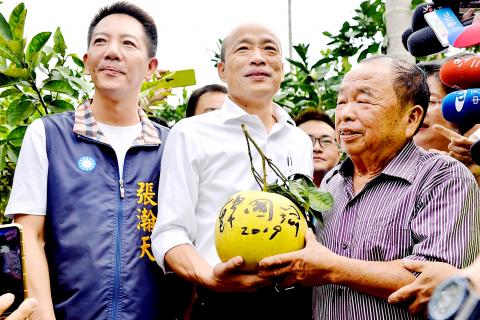 At a rally in Changhua County’s Yuanlin City (員林) on Monday, Han said that farmers are often DPP supporters, but their lives are getting worse, while the lives of DPP officials are improving.