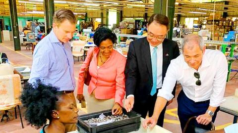 The Twitter post showed a photograph of Ambassador to Saint Lucia Shen Cheng-tsung (沈正宗) touring a US-owned factory complex there, accompanied by World Bank executive director Erik Bethel, Saint Lucia Governor Nancy Charles and US Department of State official Corey Johnston.