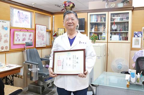 Pingtung County’s oldest practicing ear, nose and throat (ENT) specialist was recognized for his 55 years of service ahead of Doctors’ Day on Tuesday.
