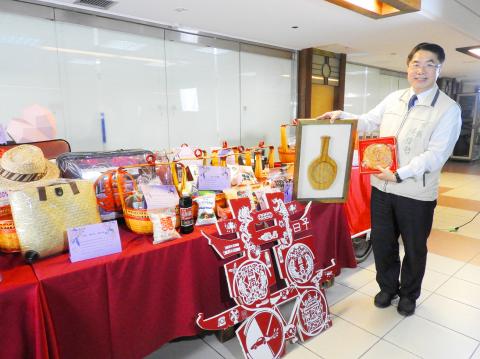 The gifts also include sesame oil from Shanhua (善化) and Sigang (西港) districts, salt from Cigu (七股), Dongcheng soy sauce and Chengkung soy sauce from Sinhua (新化), plum vinegar from Nansi (楠西) and white gourd tea bricks from the West Central District (中西區).