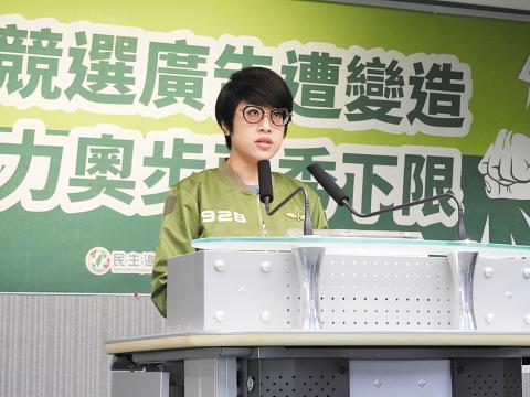 The original theme of the video was “Guard Congress, Protect Taiwan,” DPP spokesperson Lee Yen-jong (李晏榕) told a news conference in Taipei, calling on supporters to vote for the party to help it retain its legislative majority.