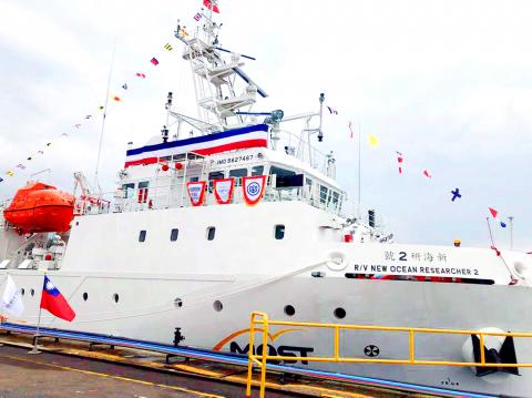 At a ceremony yesterday, the company delivered two 811-tonne vessels, the R/V New Ocean Researcher 2 and the R/V New Ocean Researcher 3, to the ministry, which is to transfer them to National Taiwan Ocean University and National Sun Yat-sen University’s College of Marine Sciences for management.
