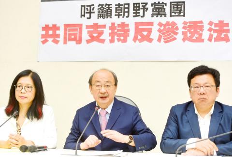 The Democratic Progressive Party (DPP) caucus unveiled an anti-infiltration bill yesterday, proposing that illegal disruption of social order or assemblies under the command or request of “infiltration sources” should be subject to a maximum penalty of seven years in prison and a fine of NT$5 million (US$163,897).