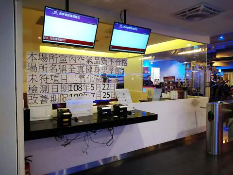 Of the 28 gyms that failed the examinations, 21 did not meet facility and safety management standards, while the indoor carbon dioxide concentrations at two gyms exceeded legal standards, Taipei Consumer Protection Officer Kung Chien-ya (龔千雅) said.