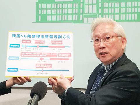 Meanwhile, the Executive Yuan yesterday said that it plans to reserve the frequency band between 4.8GHz and 4.9GHz for private corporations to conduct experiments of 5G applications, adding that fees would be charged for using the spectrum.