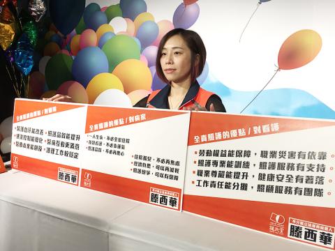 The “total nursing care” proposal was presented by Eva Teng (滕西華), a long-time advocate for the rights of patients and the physically challenged, as well as the PFP’s No. 1 nominee on its legislator-at-large list.
