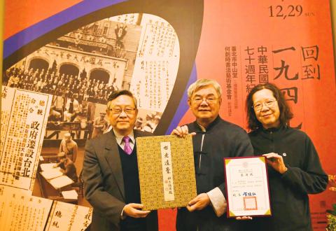 The relics are to be on display at Taipei’s Zhongshan Hall (中山堂) until Dec. 29.