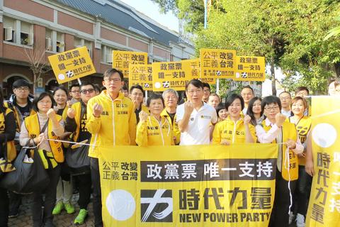 Separately yesterday, the NPP, which won 7 percent of overall party votes in the 2016 elections, canvassed in Taichung’s Jianguo Market (建國市場).