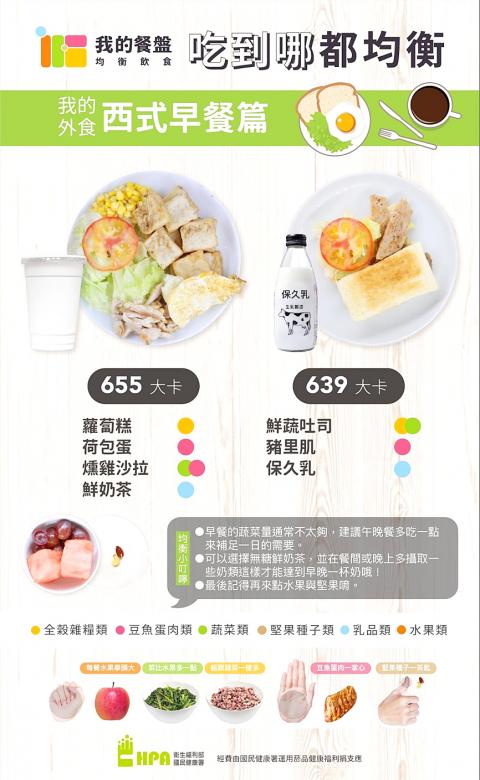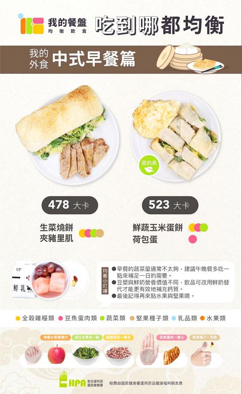 The HPA cited guidelines it introduced in October that recommend what people who frequently eat out should order at Taiwanese or Western-style breakfast shops to ensure a balanced and nutritious first meal of the day.