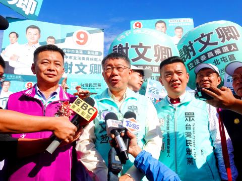 “The intention behind drafting the act is okay,” Ko said yesterday on the sidelines of a campaign event for TPP legislative candidate Hsieh Wen-ching (謝文卿) in Taichung.