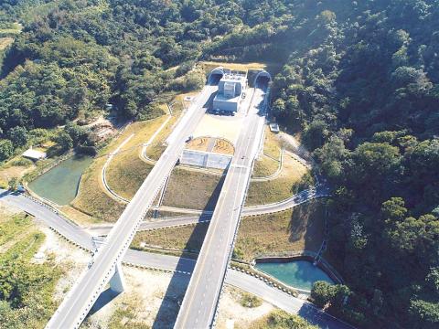 Among them, Guangyin (觀音隧道) and Gufong (谷風隧道) tunnels in the Nanao to Heping section are connected by the semi-sealed Guying Bridge (谷音橋), which is about 12.6km long, making it the nation’s second-longest tunnel, behind the Hsuehshan Tunnel (雪山隧道) on the Chiang Wei-Shui Freeway (National Freeway No.5).