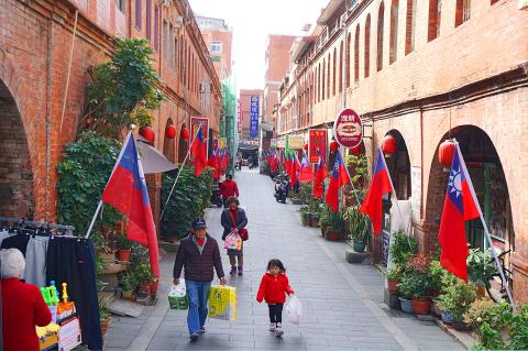 In 2018, he and Dongmen Borough (東門) Warden Tsai Hsiang-kun (蔡祥坤) began lining the streets with both flags, Wang said.