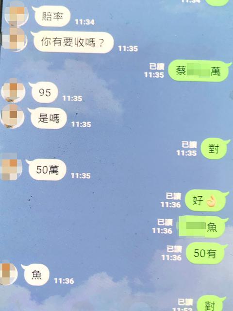 One seized mobile phone showed that its owner wrote: “Can we eat ‘fish’ today?” on Line, asking a gambling pool operator if they were taking bets on Han that day. After receiving an affirmative reply, the man wrote back to place a NT$500,000 (US$16,609) wager on Han.